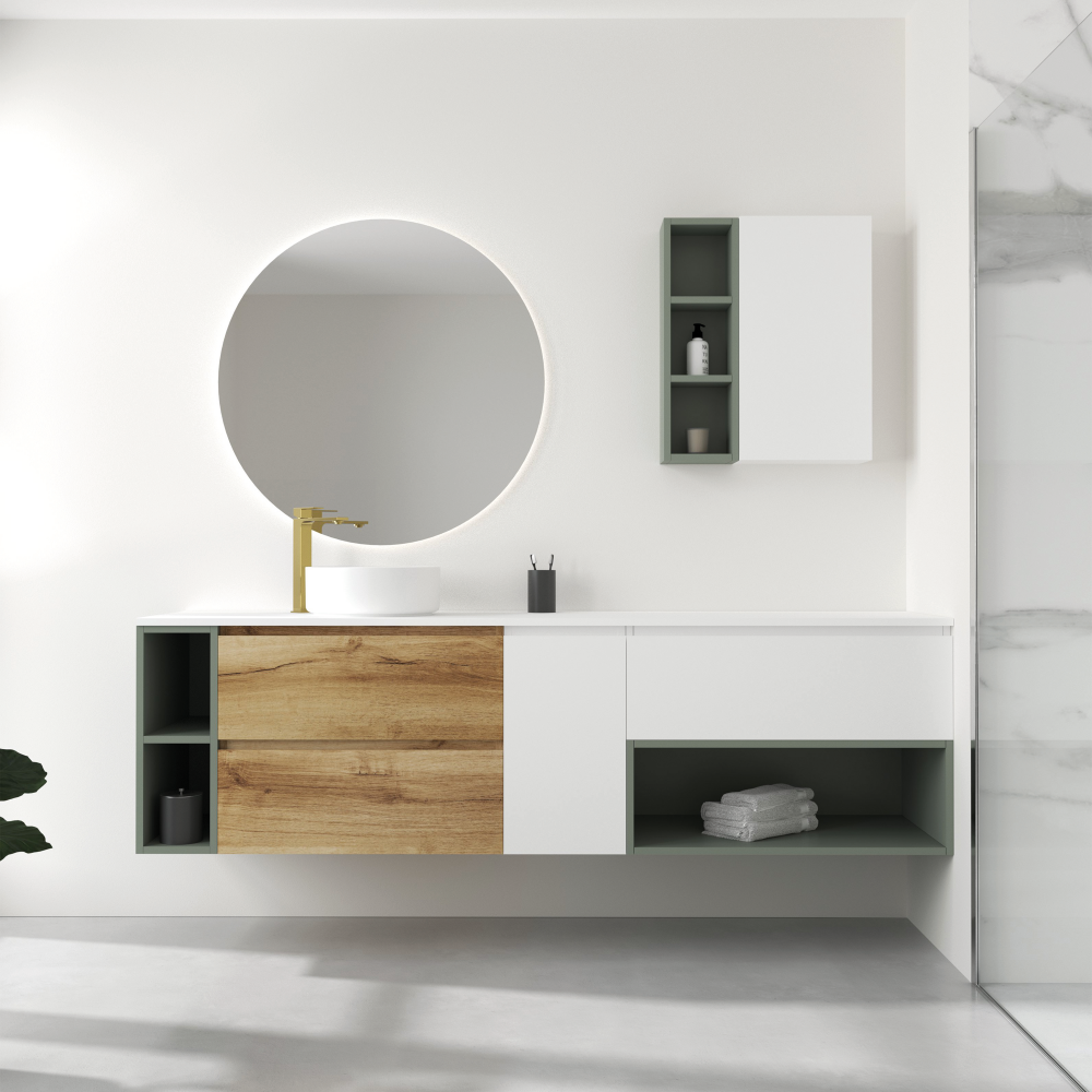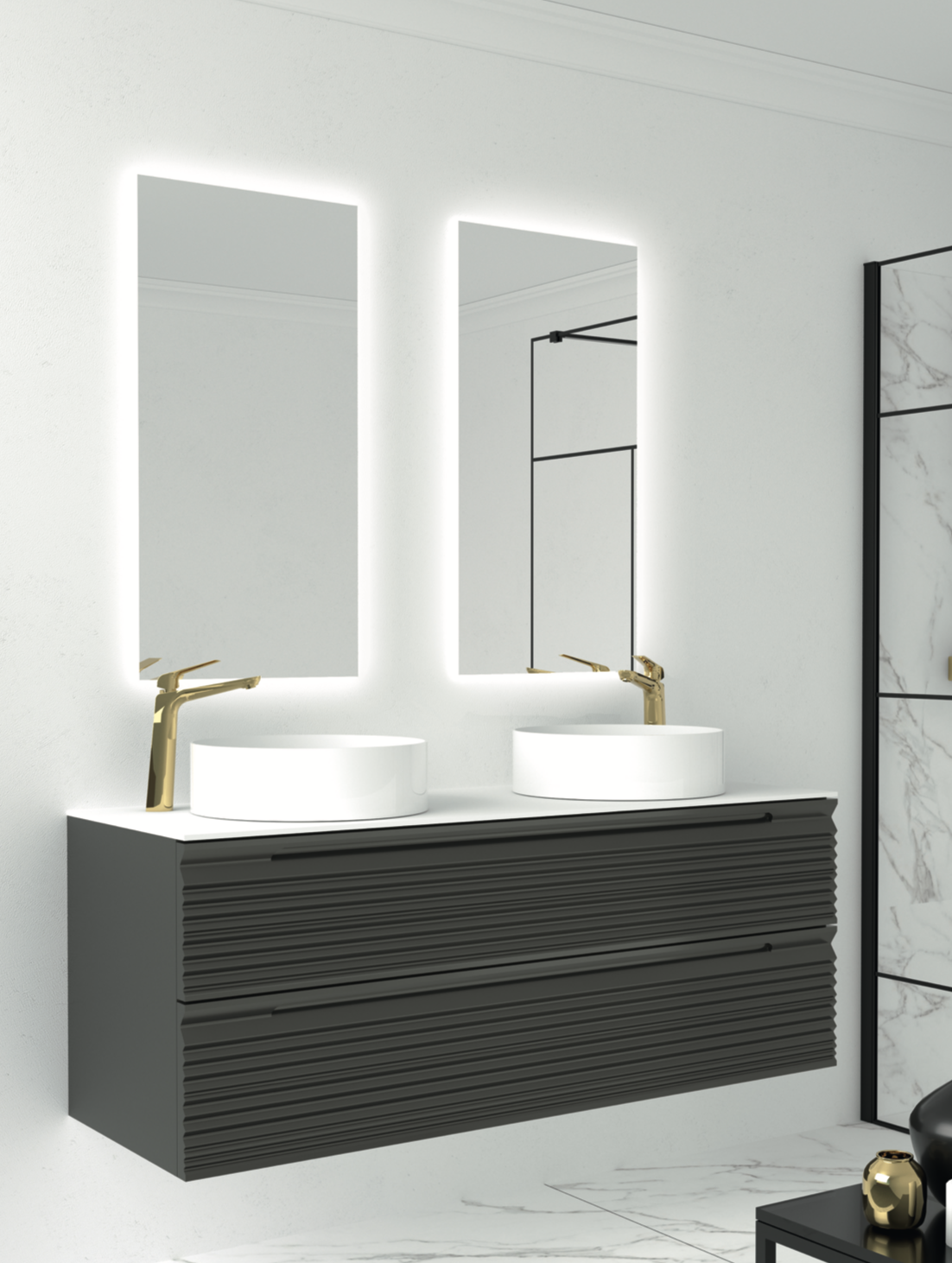 Aussi bien esthétique que fonctionnel, nous vous proposons une large gamme de meuble avec diverses finitions. Le classique blanc, le chic noir, une touche de couleur : à vous de choisir. Et pour réchauffer l'ambiance, optez pour les finitions bois. A la recherche d'un ensemble standard ou d'une composition personnalisée, d'une vasque centrée ou décalée, encastrée ou à poser, sur un meuble ou un plan, il y a forcément la combinaison qu'il vous faut.